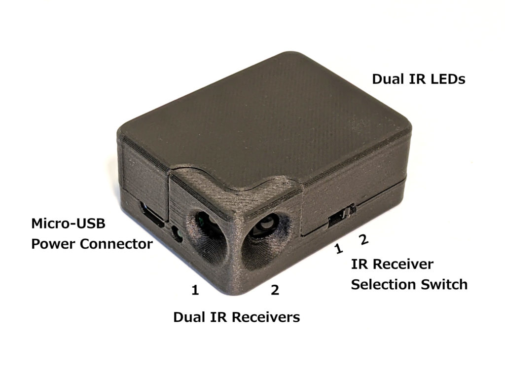 - IR receiver selection: a slide switch is used to select which IR receiver is enabled